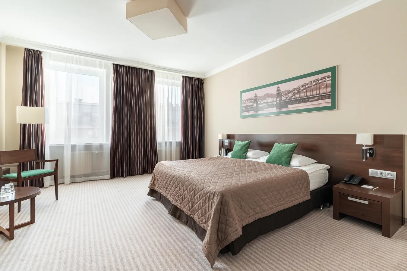 Арт Отель «Карелия» - это 16-этажный комплекс на 500 номеров и апартаментов. Отель расположен в тихом районе, в 15 минутах езды от центра города. Номера оборудованы всем необходимым, а Интернет Wi-Fi доступен на всей территории отеля бесплатно. На 1 этаже Вы можете посетить ресторан, в котором мы предлагаем нашим посетителям большой выбор блюд традиционной русской, европейской и азиатской кухни. В холле отеля также расположен лобби-бар. Преимуществом Арт-Отеля «Карелия» перед другими отелями и гостиницами Санкт-Петербурга является расположение в экологически чистой зоне, недалеко от парка 50-летия Октября. Благодаря удобному транспортному сообщению добраться до центра города Вы сможете за 20 минут.